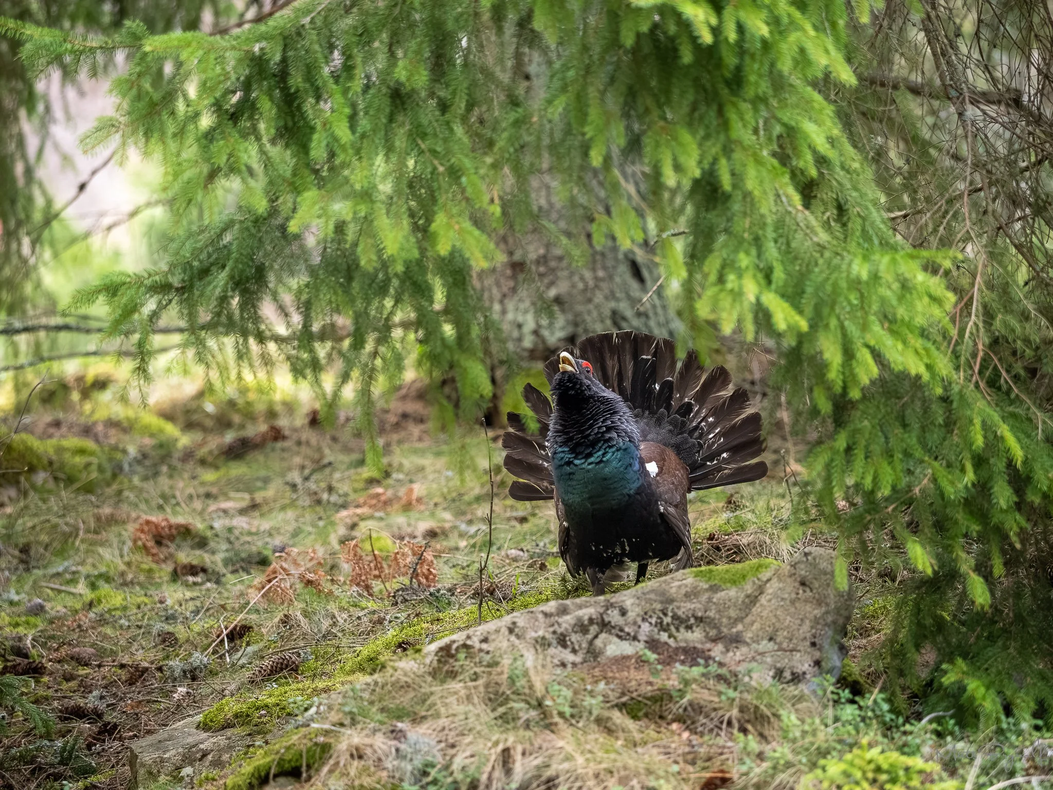 The Småland forest is usually peaceful, but not today. I ran into a massive capercaillie—a tjädertupp—who clearly thought he owned the trail.